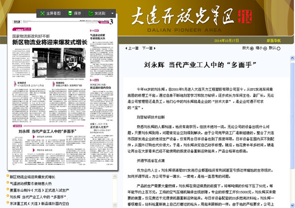 恭贺刘永辉副厂长荣登“大连开放先导区报”技术先锋版块,并作为此板块代表人物为大家更好的起到了带头作用。