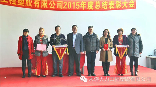 2015年1月30日,大连天力工程塑胶有限公司2015年度总结表彰大会在亮甲店顺利召开,本次大会由董事长谷顺学亲自总结报告,天力集团下属四个公司及两个工场全体人员参会,会上对各公司及工场2015年度工作分别进行了总结及表彰,并现场颁发了年度优秀员工、先进集体,突出贡献奖等。董事长寄语:新的一年里,每一位员工不分职位高低、能力大小,在各自的岗位上只要能做到有一份热、发一份光,这就是为天力增彩,2016年我们继续努力。