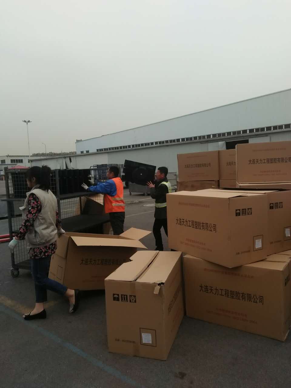 天力公司最新研发空调新品隔板5202 5204已于5月5日批量生产通关交货,货区员工装车报检。