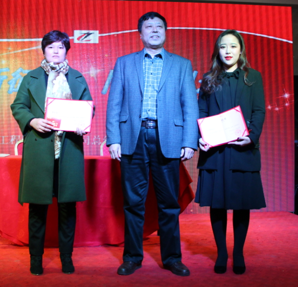 董事长谷顺学为销售中心贾雪莲、李琨石颁发优秀员工证书