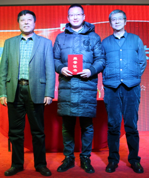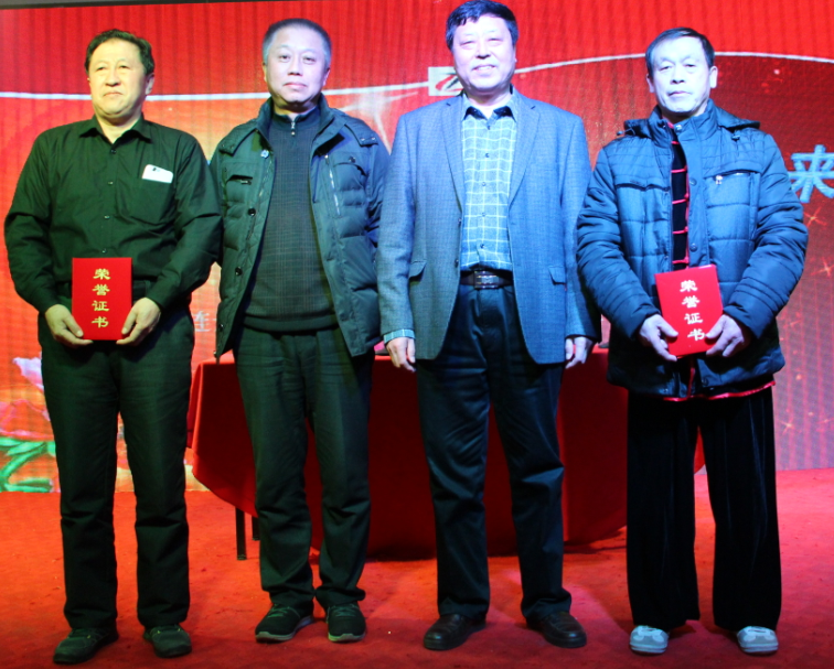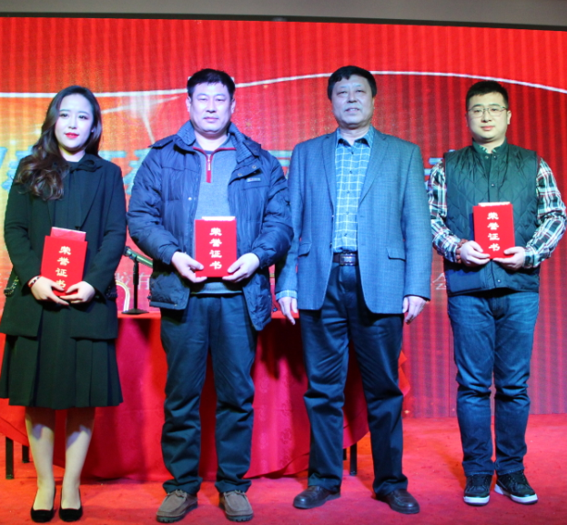 董事长谷顺学为刘永辉、毕业、王福礼颁发突出贡献员工证书和奖金