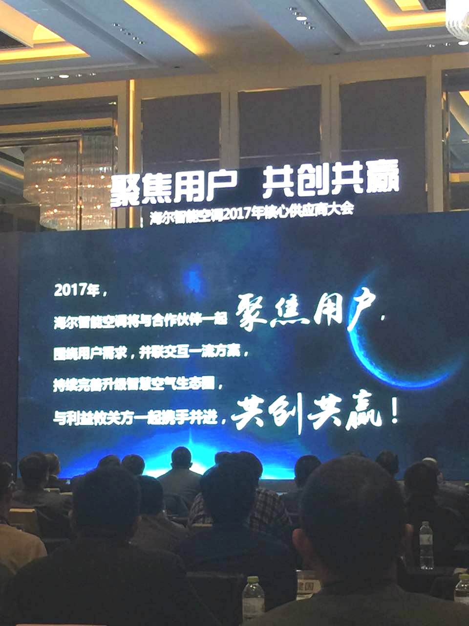 近日,海尔智能空调2017年核心供应商大会在青岛召开,我公司代表参加了此次会议。