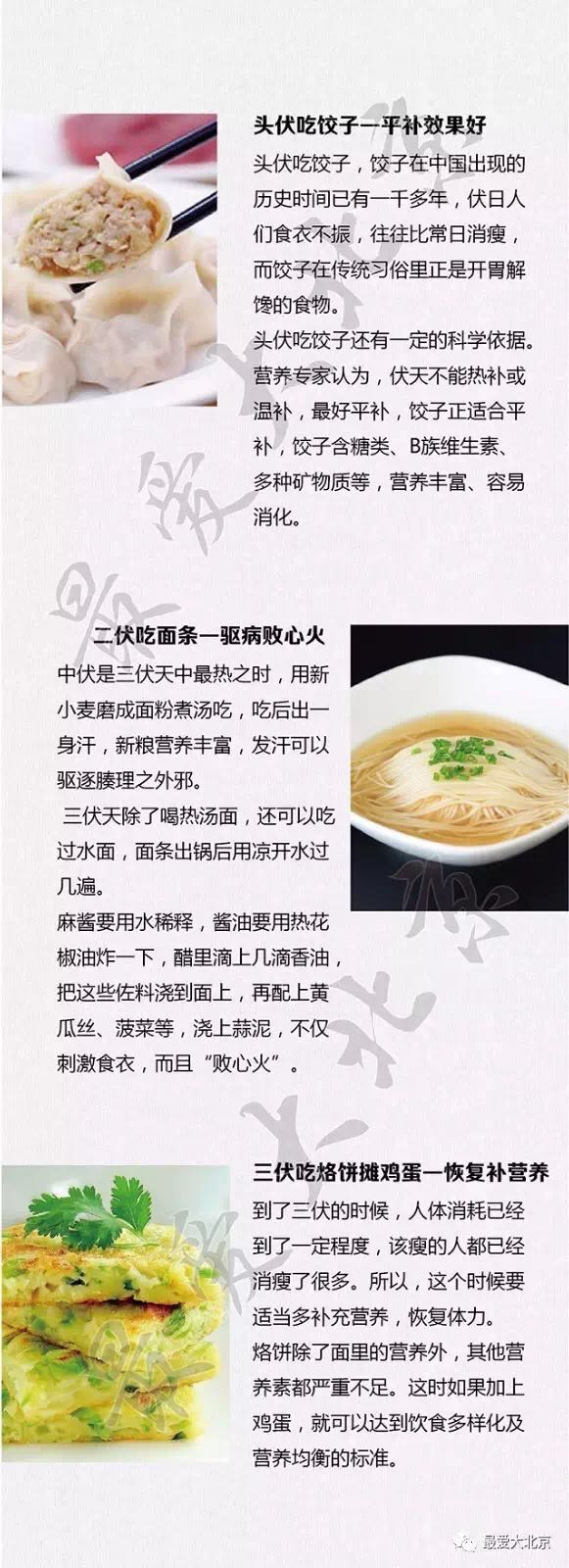 “头伏饺子,二伏面,三伏烙饼摊鸡蛋。”