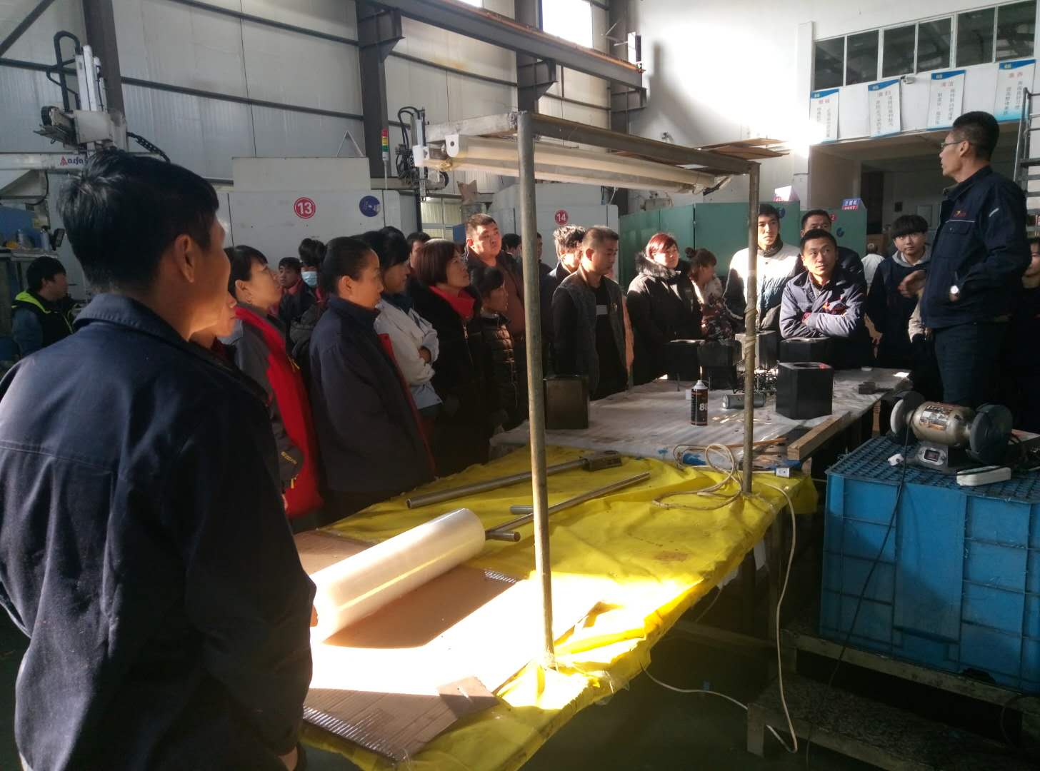 临近年末,随着客户订单增多,注塑工场生产任务增大。为保证产品质量和及时供货,发泡工场开展了全员培训讲座,内容涵盖了岗前培训、规章制度、安全生产、质量标准、“6S”管理、注塑机安全、模具安全、物料回用等方面,并由技术部门就相关内容进行现场讲解,提升全员的操作能力,从而保障注塑工场的生产进度。