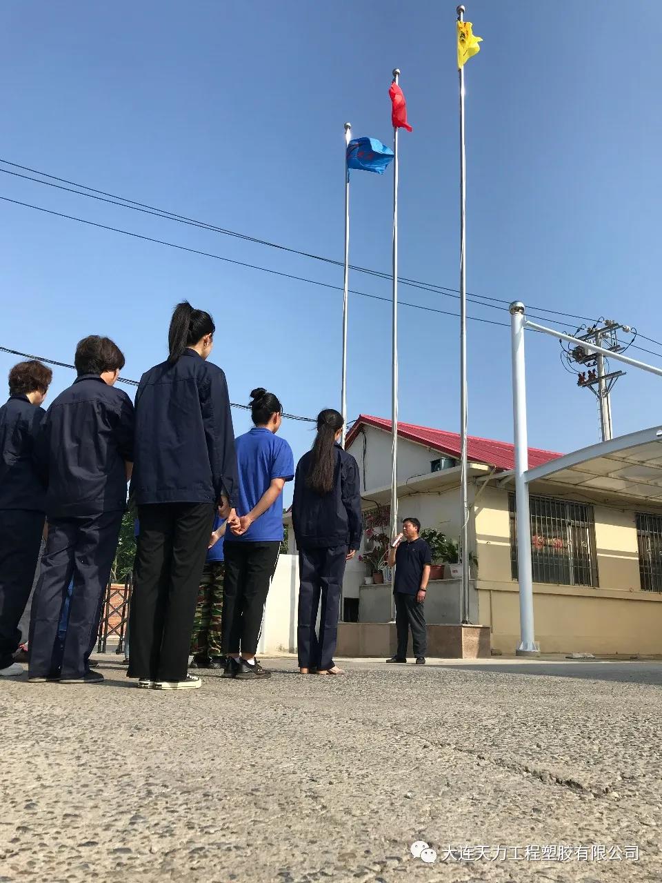 董事长助理谷领峥主持升旗仪式。伴随着慷慨激昂的义勇军进行曲,庄严而又鲜艳的五星红旗冉冉升起。